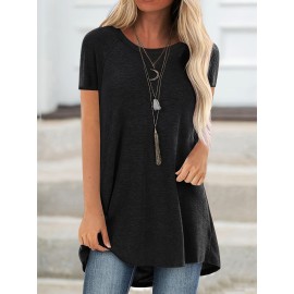 Colorful Abstract Print Crew Neck T-Shirt, Casual Short Sleeve Top For Spring & Summer, Women's Clothing