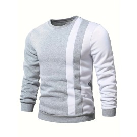Men's Color Block Trendy Sweatshirt - Casual Graphic Design Crew Neck Pullover for Autumn Winter