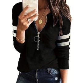 Women's Business Casual Zipper Tops, Elegant & Stylish Tops For Office & Work, Women's Clothing