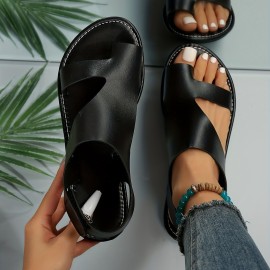 Women's Cross Strap Flat Sandals, Casual Slip On Summer Sandals, Women's Lightweight Beach Shoes